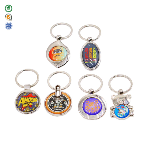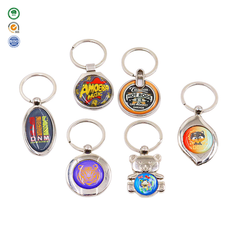 반짝이는 로고가 있는 아연 합금 키체인 도매, 고품질 금속 키체인